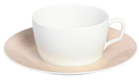 Чашка с блюдцем для каппучино, белая/золотая сетка