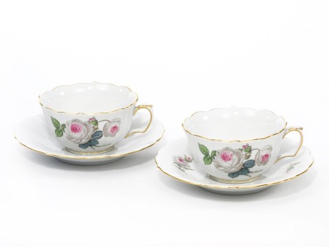 / Чайные чашки с блюдцами "Белая роза с пурпурной серединкой"